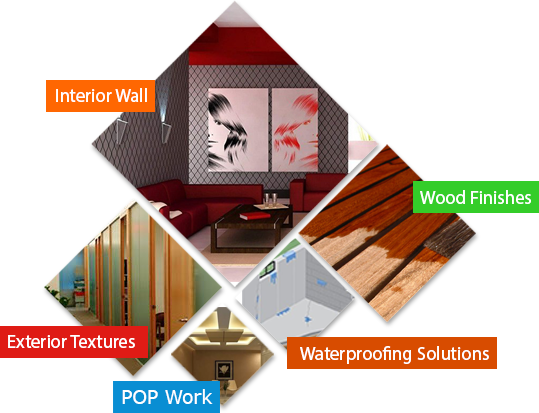 With an array of services, we provide comprehensive solutions for interior wall coatings, exterior wall coating, exterior textures, metal finishes, wood finishes, glass finishes, waterproofing solutions and POP work.